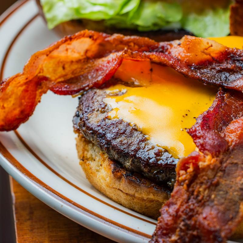 A 1/3 lb beef patty cooked to order, served with french fries, soup, or a dinner salad with your choice of dressing.